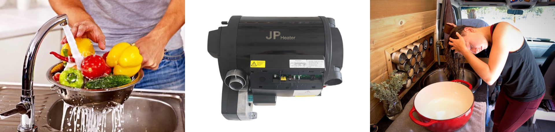 The JP Heater can be powered by both gas and electric sources, making it suitable for a wide range of RV setups. Whether you're parked in a fully equipped campsite or off the grid, you can rely on the JP Heater to keep you warm and provide hot water.