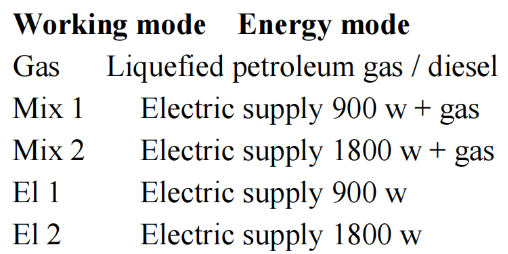 When the power demand is low (for example, at the stage of maintaining room temperature), the electrical mode is preferred. The diesel mode will not be started until the electrical mode can not satisfy the demands, and the diesel mode function shall be turned off first in the power adjustment stage. In the hot water operation mode, the diesel mode or the electrical mode is used to heat the water tank. The temperature of the water tank can be set to 40℃ or 60℃。