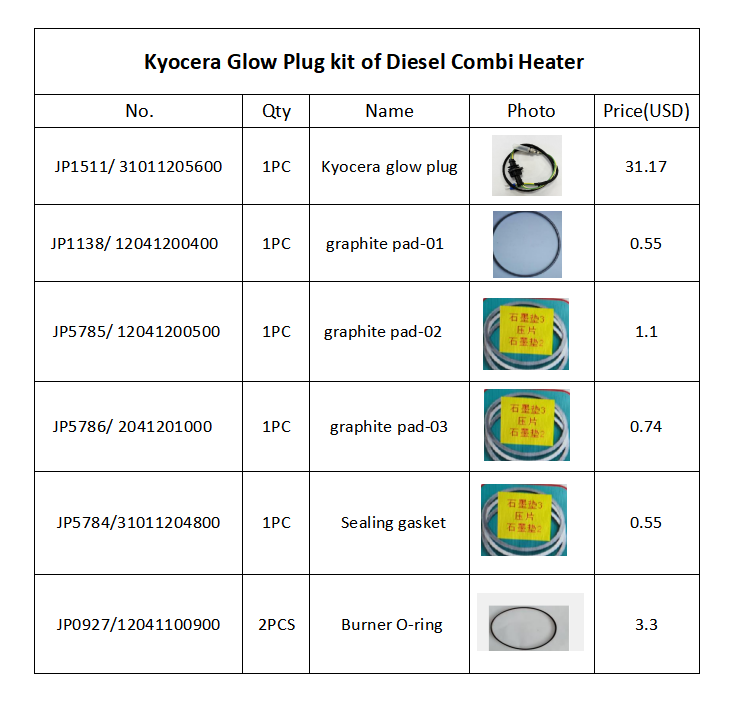 If your heater's main controller version belongs to "H28.180~H28.191" and it needs to be upgraded to H28.195, then your heater can work with the Kyocera glow plug.